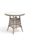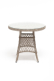 В плетеный комплект входит круглый стол «Эспрессо» диаметром 80 см с ударопрочной стеклянной столешницей и 2 кресла коллекции «Латте» 550×680×840 мм.