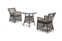 Набор представлен в графитовом цвете. "Эспрессо" плетеный круглый стол, диаметр 80 см, цвет графит 1шт. 800Х800Х750, "Латте" плетеное кресло из искусственного ротанга, цвет графит 2шт. 550Х660Х850,
