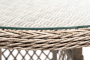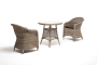 В плетеный комплект входит круглый стол «Эспрессо» диаметром 80 см с ударопрочной стеклянной столешницей и 2 кресла коллекции «Равенна» 570×680×810 мм.