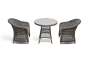 Набор представлен в графитовом цвете. "Эспрессо" плетеный круглый стол, диаметр 80 см, цвет графит 1шт. 800Х800Х750, "Равенна" плетеное кресло из искусственного ротанга, цвет графит 2шт. 570Х680Х810,