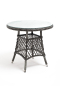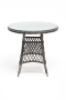 В плетеный комплект входит круглый стол «Эспрессо» диаметром 80 см с ударопрочной стеклянной столешницей и 2 кресла коллекции «Равенна» 570×680×810 мм.