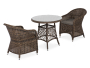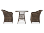В плетеный комплект входит круглый стол «Эспрессо» диаметром 80 см с ударопрочной стеклянной столешницей и 2 кресла коллекции «Равенна» 680×570×810 мм.
