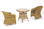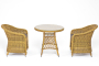Набор представлен в натуральном соломенном цвете. "Эспрессо" плетеный круглый стол, диаметр 80 см, цвет соломенный 1шт. 800Х800Х750, "Равенна" плетеное кресло из искусственного ротанга, цвет соломенный с серой подушкой 2шт. 570Х680Х810,