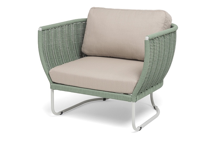 Плетение боковины каркаса вручную оплетены роупом — эластичными синтетическими лентами из высокопрочных полиэфирных волокон. Оплетка - круглый tex, что придает креслу изысканный и оригинальный внешний вид.
