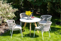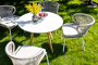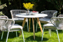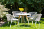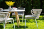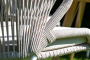 Стулья изготовлены из алюминиевого каркаса, оплетенного вручную роупом - синтетическими лентами из полиэфирных волокон.