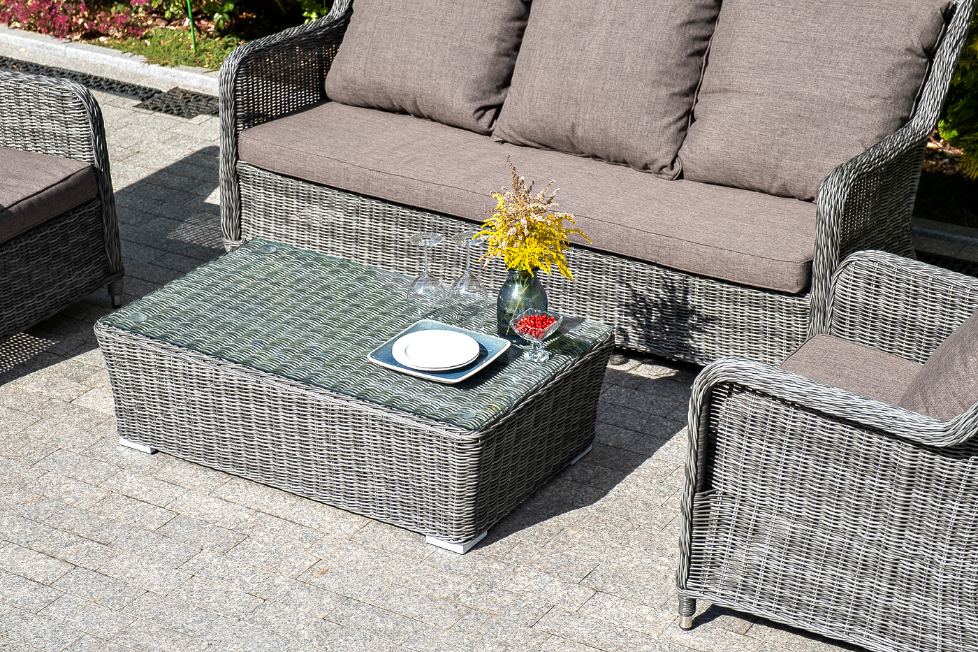"Гляссе" диван трехместный из искусственного ротанга, цвет графит 1шт. 1 900Х880Х990, "Гляссе" кресло плетеное из искусственного ротанга, цвет графит 2шт. 730Х880Х990, "Капучино" журнальный столик из искусственного ротанга, цвет графит 1шт. 1 100Х660Х340,