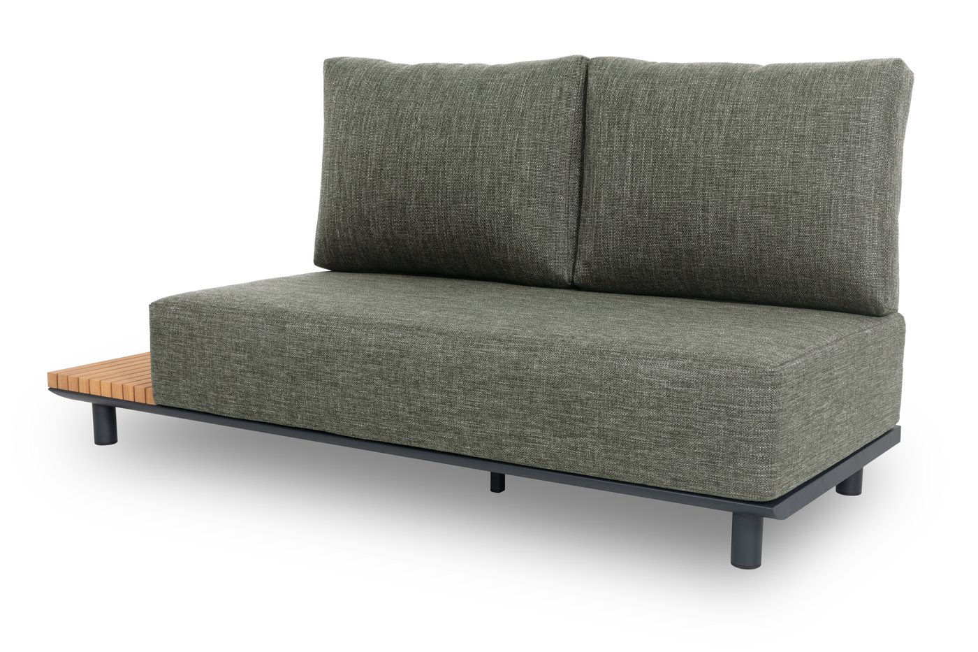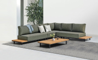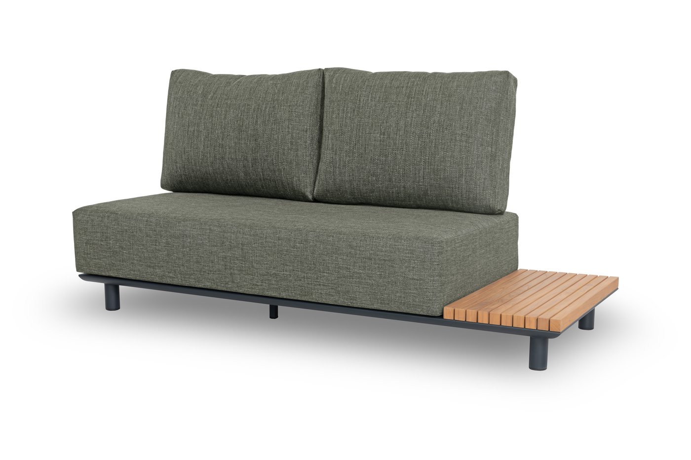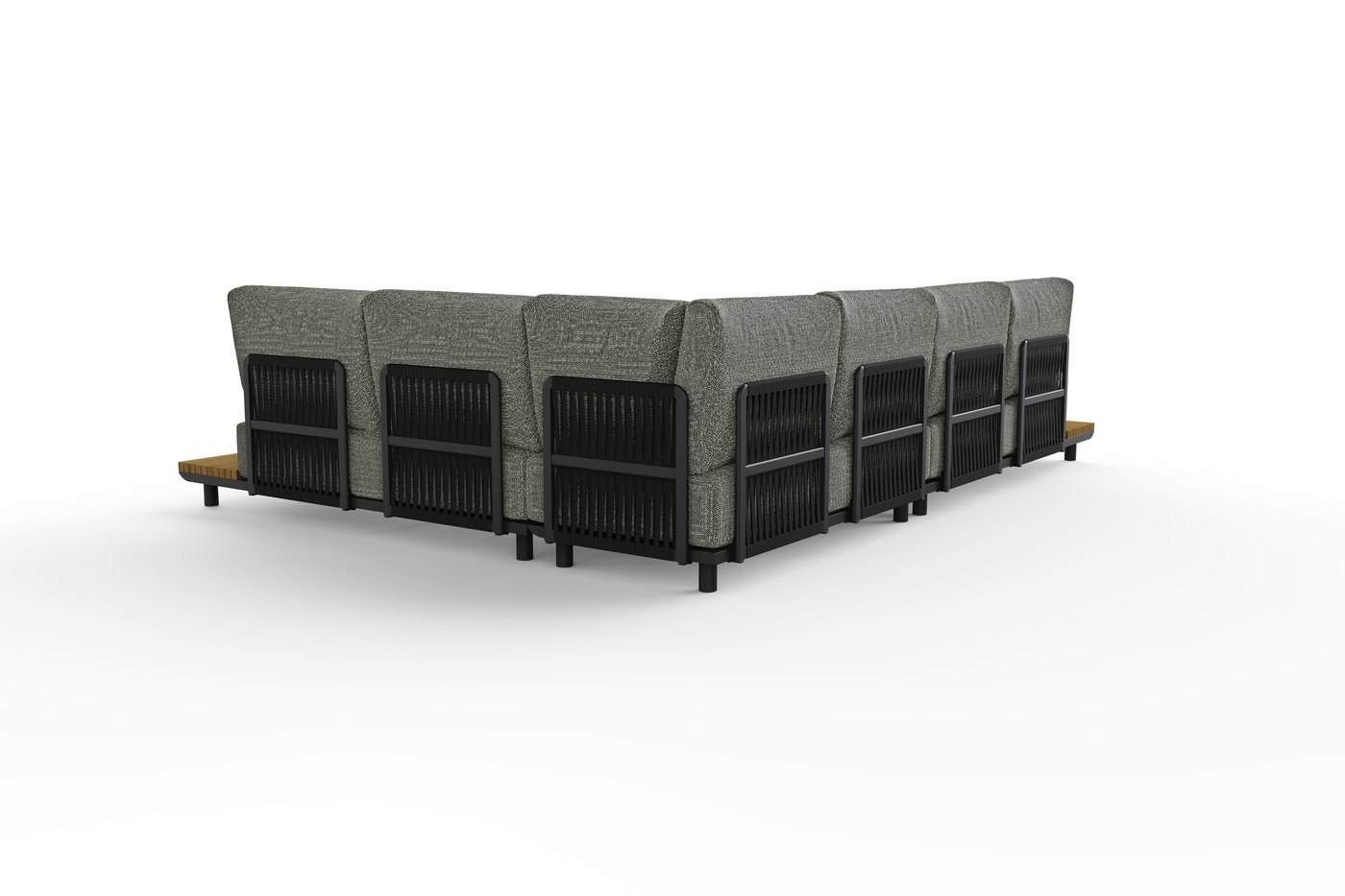 Набор имеет гладкую алюминиевую раму, а столешницы сделаны из тика. Роскошные подушки толщиной 22 см, чехлы изготовлены из высококачественной, водоотталкивающей и устойчивой к погодным условиям ткани Sunproof®olefin.