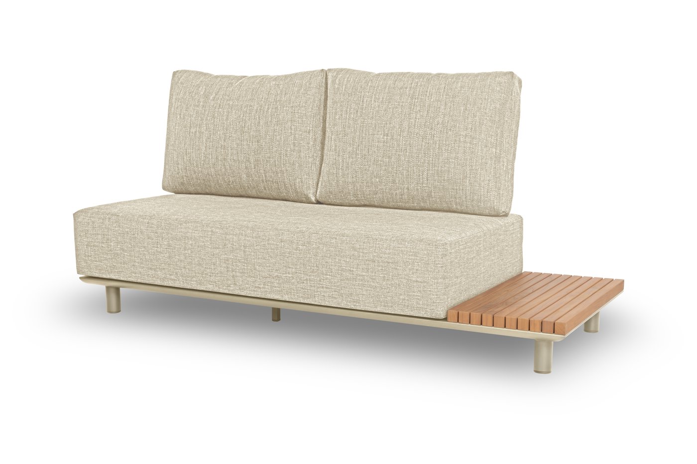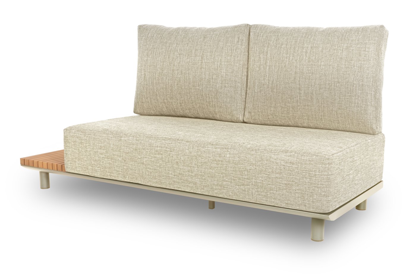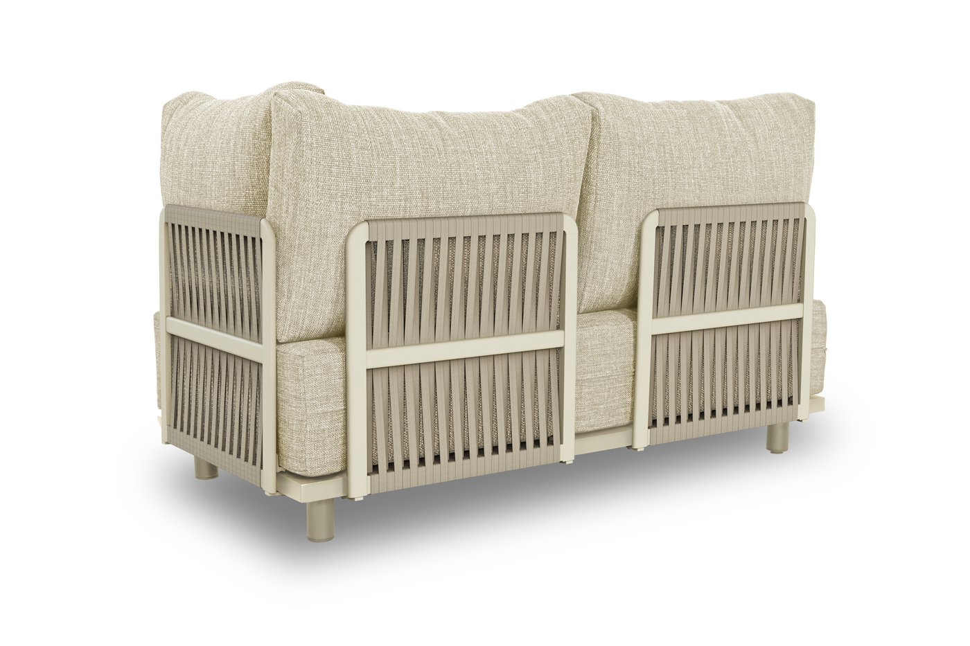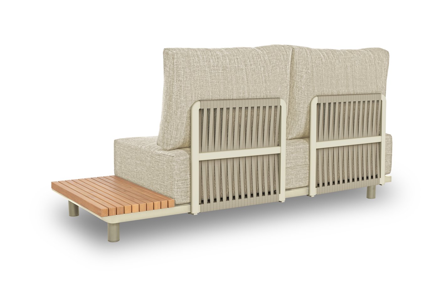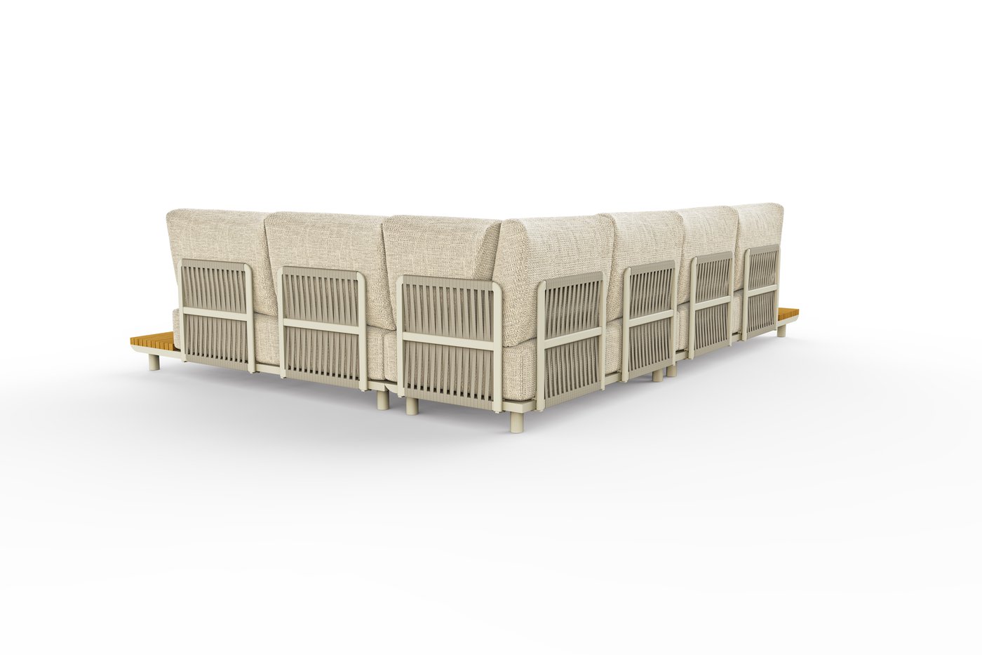 Набор имеет гладкую алюминиевую раму, а столешницы сделаны из тика. Роскошные подушки толщиной 22 см, чехлы изготовлены из высококачественной, водоотталкивающей и устойчивой к погодным условиям ткани Sunproof®olefin.