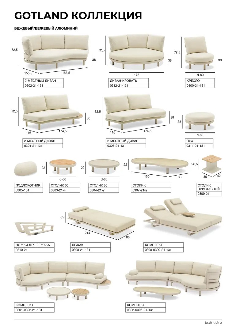 - Особенности: ткань подушек- бежевый олефин (водостойкая, устойчива к ультрафиолетовому излучению), чехол черного цвета входит в комплект