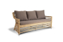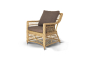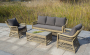 Уличная мебель имеет алюминиевый каркас. В качестве декоративного элемента предлагается ручное плетение, сделанное из соломенного искусственного ротанга. Предусмотрены мягкие подушки из полиэстера серо-коричневого цвета с плотностью 230гр/м2. Они имеет влагоотталкивающую пропитку. Рабочая поверхность столика изготовлена из закаленного стекла толщиной 5 мм.