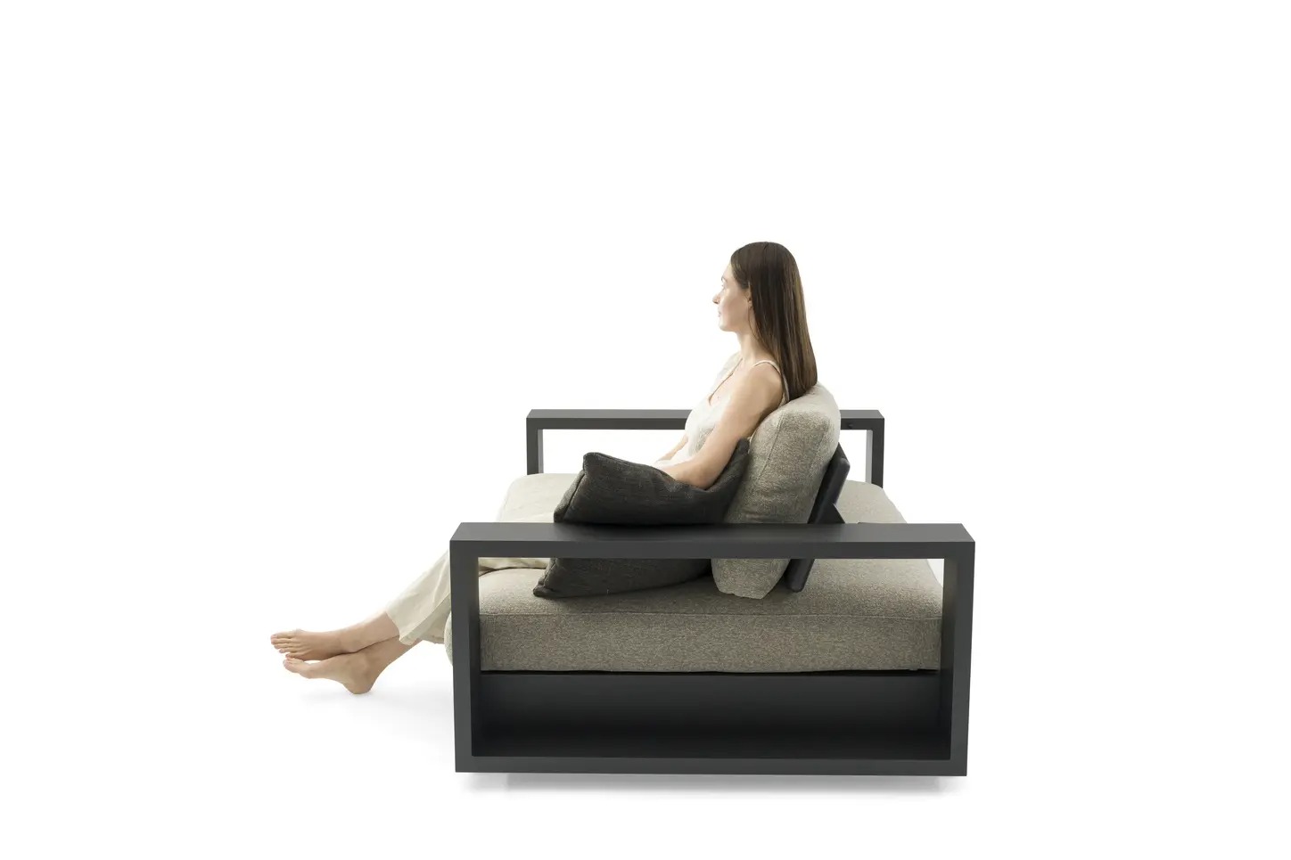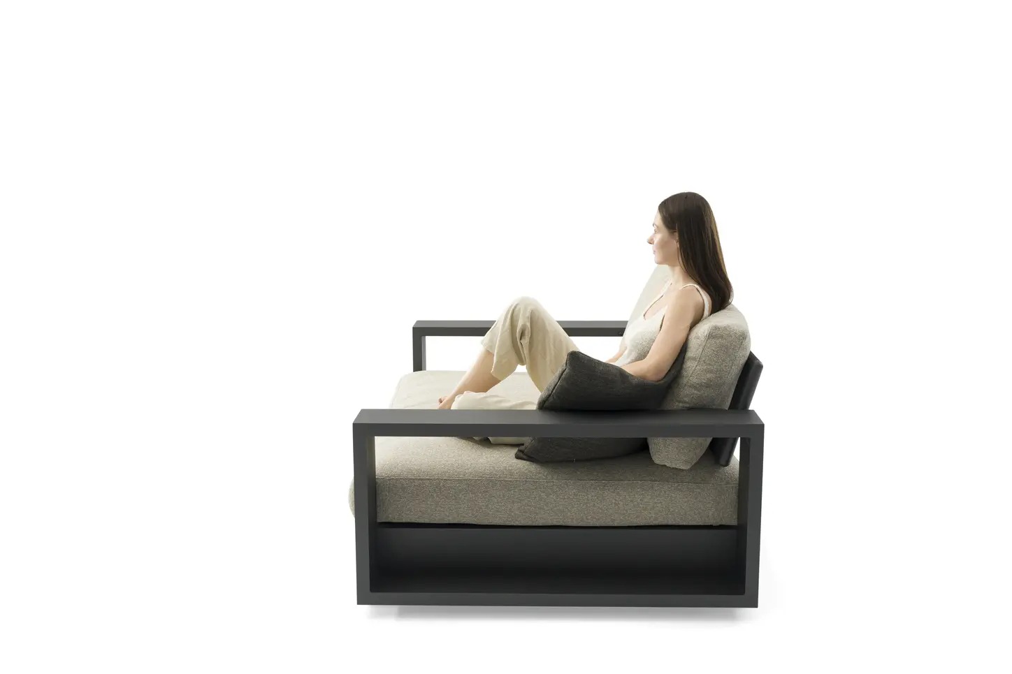Поднимите круглую спинку и переверните ее. Подушки смещаются вместе с ней, мгновенно создавая более глубокое и удобное сиденье — идеальное для чтения, непринужденной беседы или кофе у бассейна.