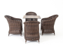 - 4 плетеных кресла "Равенна" из искусственного ротанга, размером - 680×570×810 мм, цвет - коричневый. "Каффе" интерьерный стол из HPL квадратный 70х70см, цвет "дуб" 1шт. 700Х700Х750, "Равенна" плетеное кресло из искусственного ротанга, цвет коричневый с серой подушкой 4шт. 570Х680Х810,