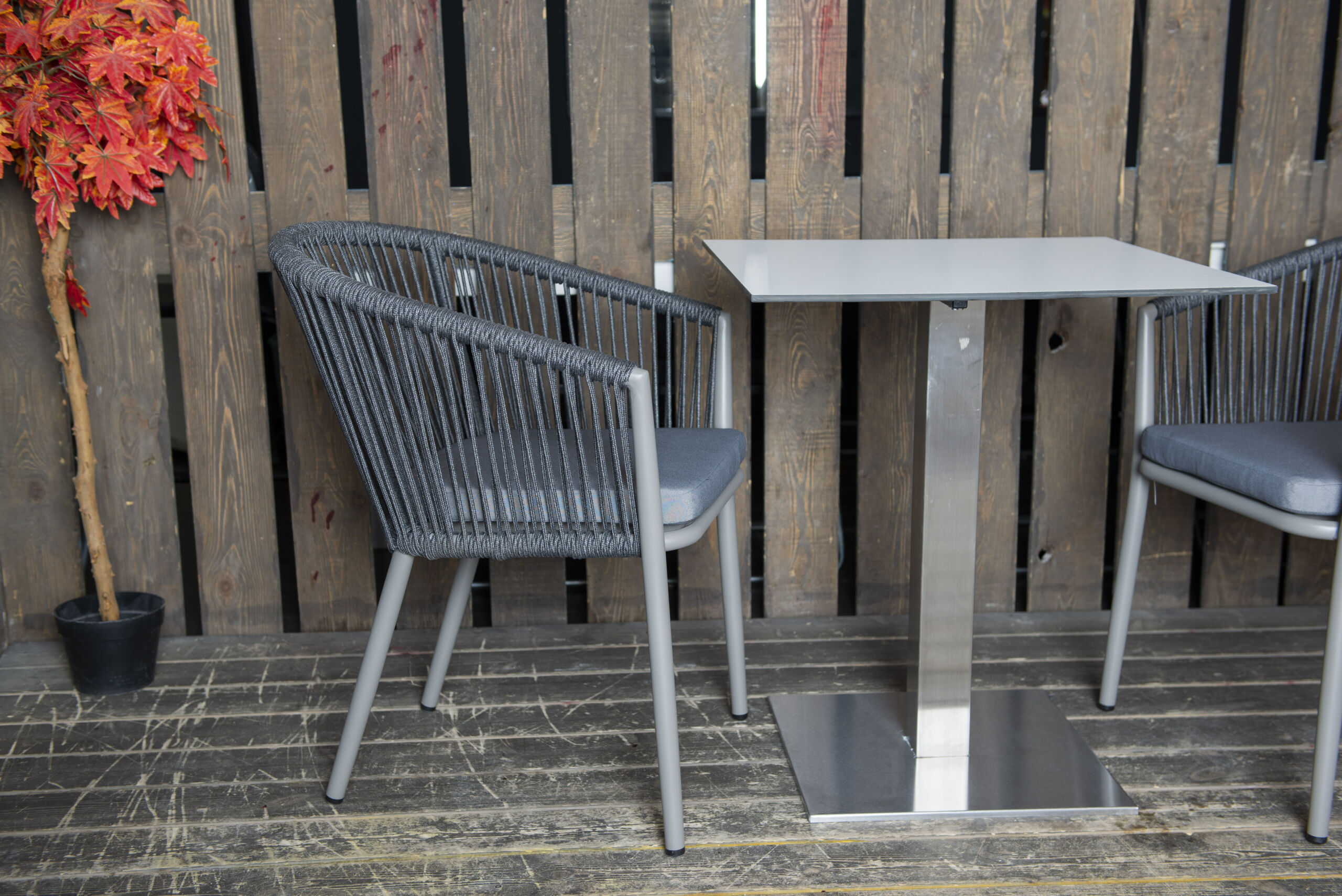Стол 64х64см, столешница высококачественный монолитный компакт-пластик HPL, цвет молочный, подстолье нержавеющая сталь.
