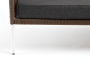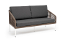 Каркас дивана изготовлен из прочного алюминия и окрашен порошковой краской в белый цвет. Боковины каркаса оплетены роупом - эластичными синтетическими лентами коричневого цвета, изготовленными из высокопрочных полиэфирных волокон. Такое плетение не только придает дивану особую изысканность, но и увеличивает срок его службы.