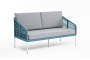 Двухместный диван "Канны" плетеный бирюзовым роупом - эластичными синтетическими лентами, выполненными из полиэфирных волокон.