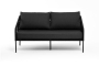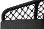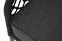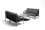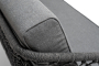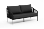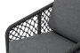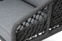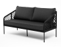 Диван имеет алюминиевый каркас, окрашенный порошковой краской в темно-серый (RAL7024) цвет. Боковины каркаса и спинка вручную оплетены роупом, в плетении "узелки" - эластичными синтетическими лентами, изготовленными из высокопрочных полиэфирных волокон. Цвет оплетки в тон каркасу - темно-серый.