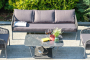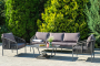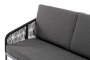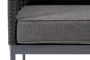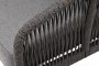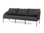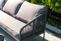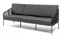 Диван имеет алюминиевый каркас, окрашенный порошковой краской в темно-серый (RAL7024) цвет. Боковины каркаса и спинка вручную оплетены роупом - эластичными синтетическими лентами, изготовленными из высокопрочных полиэфирных волокон. Цвет оплетки в тон каркасу - темно-серый. Тип ткани - рогожка.