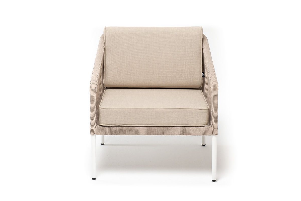 Приятное дополнение − подушки со съёмными чехлами аналогичного бежевого оттенка из влагоотталкивающей ткани, устойчивой к ультрафиолетовым лучам и неблагоприятным атмосферным воздействиям.