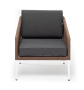 Приятное дополнение − подушки со съёмными чехлами серого цвета из влагоотталкивающей ткани, устойчивой к ультрафиолетовым лучам и неблагоприятным атмосферным воздействиям.