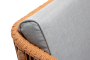 Плетеное изделие выполнено из прочного роупа оранжевого цвета, который придает интерьеру яркость.