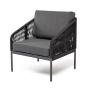 Плетеное кресло «Канны» идеально подходит для комфортного отдыха в саду или на балконе. Прочный каркас из алюминия окрашен в насыщенный темно-серый (RAL7024) цвет порошковой износостойкой краской. Покрытие прочное, устойчивое к возникновению сколов и ржавчины.