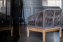 На боковинах - оплетка из синтетических лент, выполненных из полиэфирных волокон высокой прочности. Цвет плетения - коричневый. Основание - дуб. Тип ткани - рогожка.