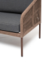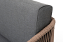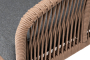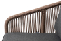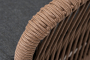Каркас уличной мебели выполнен из прочного алюминия. Его дополняет коричневая оплетка, изготовленная на основе эластичных синтетических лент из полиэфирных волокон высокой прочности.