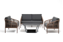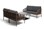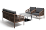 Кресла и диван идут в комплекте с мягкими подушками в чехлах темно-серого цвета. "Гранада" журнальный стол 100х65см из HPL, цвет "серый гранит" 1шт. 1 000Х650Х420, "Канны" диван 2-местный плетеный из роупа, каркас алюминий коричневый (RAL8016), роуп коричневый круглый, ткань темно-серая 1шт. 1 500Х700Х750, "Канны" кресло плетеное из роупа, каркас алюминий коричневый (RAL8016), роуп коричневый круглый, ткань темно-серая 2шт. 700Х700Х750,