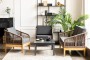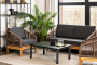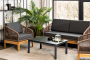 "Канны" диван 2-местный плетеный из роупа, основание дуб, роуп коричневый круглый, ткань темно-серая 1шт. 1 500Х700Х750, "Канны" кресло плетеное из роупа, основание дуб, роуп коричневый круглый, ткань бежевая 2шт. 700Х700Х750, "Канны" журнальный столик из HPL 95х60, H40, каркас серый (RAL 7024), цвет столешницы "серый гранит" 1шт. 950Х600Х400,