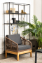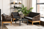 Каркас уличной мебели выполнен из дуба. Его дополняет коричневая оплетка, изготовленная на основе эластичных синтетических лент из полиэфирных волокон высокой прочности.
