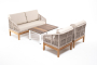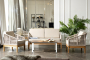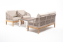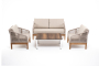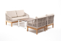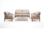"Канны" диван 2-местный плетеный из роупа, основание дуб, роуп бежевый круглый, ткань бежевая 1шт. 1 500Х700Х750, "Канны" кресло плетеное из роупа, основание дуб, роуп бежевый круглый, ткань бежевая 2шт. 700Х700Х750, "Канны" журнальный столик из HPL 95х60, H40, каркас белый, цвет столешницы "дуб" 1шт. 950Х600Х400,