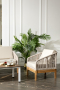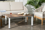 Каркас уличной мебели выполнен из дуба. Его дополняет бежевая оплетка, изготовленная на основе эластичных синтетических лент из полиэфирных волокон высокой прочности.