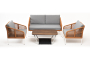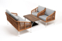 Кресла и диван идут в комплекте с мягкими подушками в чехлах светло-серого цвета. "Канны" диван 2-местный плетеный из роупа, каркас алюминий светло-серый (RAL7035) шагрень, роуп оранжевый меланж круглый, ткань светло-серая 1шт. 1 500Х700Х750, "Канны" кресло плетеное из роупа, каркас алюминий светло-серый (RAL7035) шагрень, роуп оранжевый меланж круглый, ткань светло-серая 2шт. 700Х700Х750, "Глория" журнальный стол 100х65см из HPL, цвет "дуб" 1шт. 1 000Х650Х420,