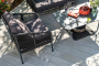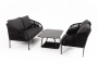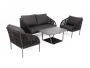 Кресла и диван идут в комплекте с мягкими подушками в чехлах темно-серого цвета. "Канны" диван 2-местный плетеный из роупа, каркас алюминий темно-серый (RAL7024) шагрень, роуп темно-серый круглый, ткань темно-серая 1шт. 1 500Х700Х750, "Канны" кресло плетеное из роупа, каркас алюминий темно-серый (RAL7024) шагрень, роуп темно-серый круглый, ткань темно-серая 2шт. 700Х700Х750, "Гранада" журнальный стол 100х65см из HPL, цвет "серый гранит" 1шт. 1 000Х650Х420,
