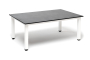 Столик состоит из прочного алюминиевого каркаса, который обеспечивает стабильность стола, и высококачественной столешницы из компакт-пластика HPL, устойчивой к царапинам и другим механическим повреждениям, что позволяет сохранить внешний вид стола на долгое время.