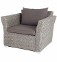 Кресло из искусственного ротанга «Капучино» серого цвета, прекрасно подходит для обустройства веранды, а относительно небольшой вес, который составляет 21,5 кг, увеличивает мобильность данной модели.