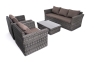 Кресла и диван идут в комплекте с подушками с серо-коричневыми чехлами. Они пошиты из качественного полиэстера с плотностью 230гр/м2. Материал предварительно проходит обработку влагоотталкивающей пропиткой. Столик дополнен практичной столешницей из стекла толщиной 5 мм. "Капучино" диван из искусственного ротанга трехместный, цвет графит 1шт. 2 220Х865Х815, "Капучино" кресло из искусственного ротанга, цвет графит 2шт. 1 040Х865Х815, "Капучино" журнальный столик из искусственного ротанга, цвет графит 1шт. 1 100Х660Х340,