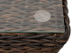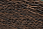 Размер модели – 1100×660×340 мм. Устойчивость и прочность ей придает каркас, выполненный из высококачественного алюминия. Каркас оплетен вручную с помощью искусственного ротанга вида "гиацинт". Мебель выполнена в коричневом цвете.