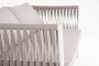 Диван имеет стальной каркас, окрашенный порошковой краской в светло-серый цвет. Боковины каркаса вручную оплетены роупом - эластичными синтетическими лентами, изготовленными из высокопрочных полиэфирных волокон. Цвет оплетки - серо-коричневый.