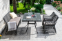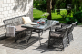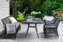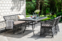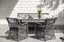 Обеденная группа выполнена в цвете графит. Комплект дополнит любой экстерьер в классическом стиле.