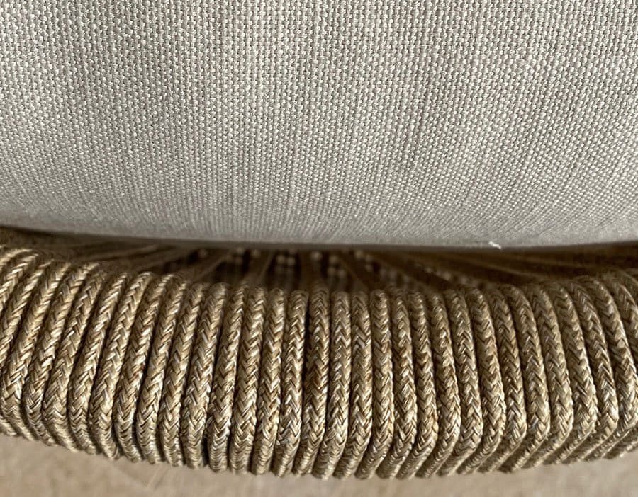 - Веревочное плетение роуп 6 мм толщиной на спинке и подлокотниках кресел излучает стиль в сочетании с деревянными поверхностями.