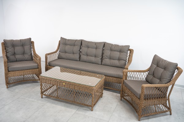 Материал комплекта - искусственный ротанг (ручного плетения)