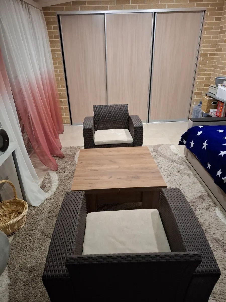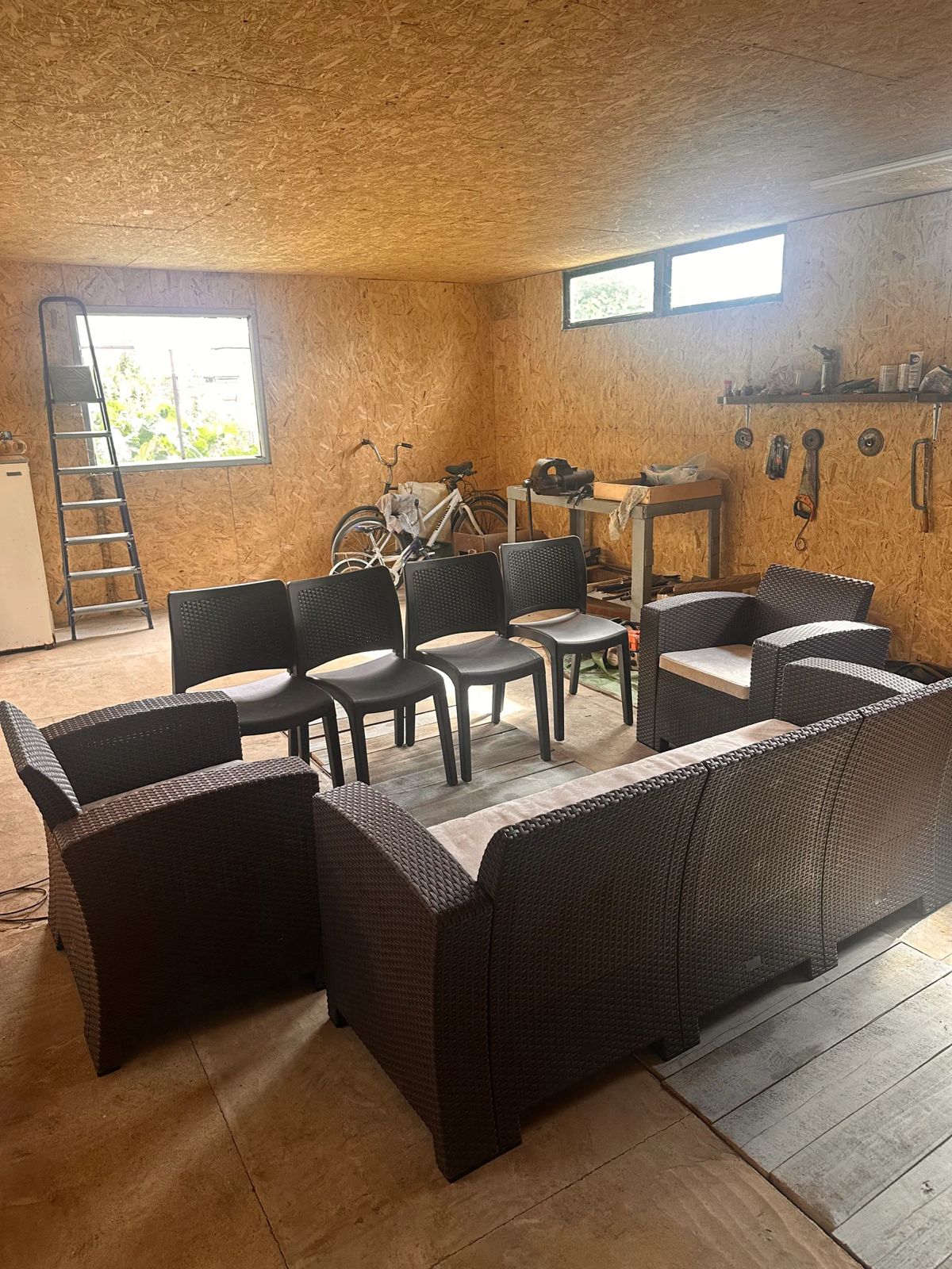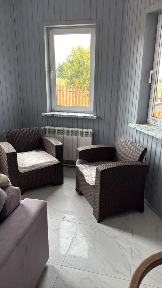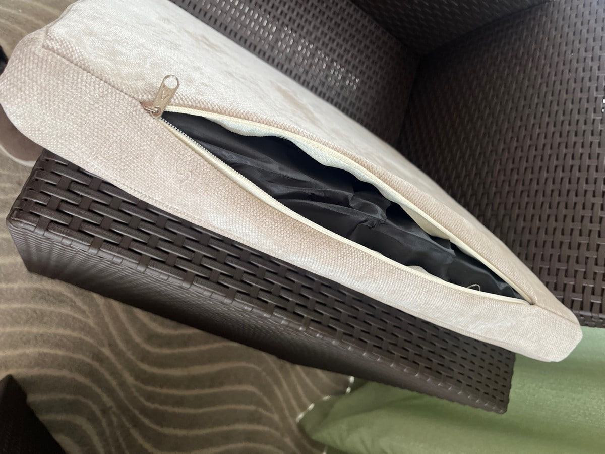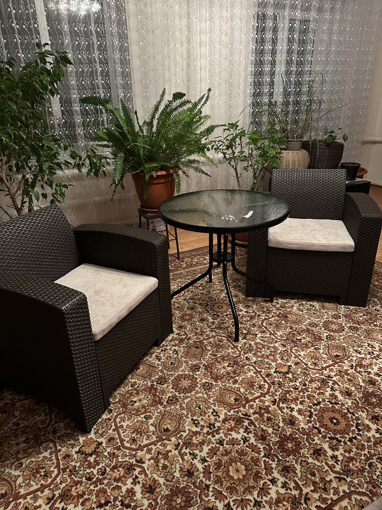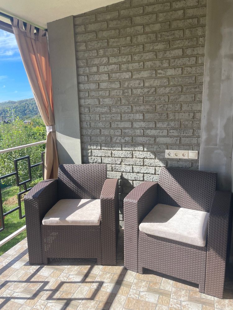 Кресла выполнены из прочного пластика с плетёной текстурой, устойчивой к влаге, солнечным лучам и перепадам температур. Они не требуют особого ухода и отлично подходят для круглогодичного использования на улице.