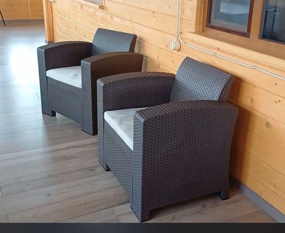 Два кресла Royal Family Lana Lux в тёплом коричневом цвете — это компактный и удобный комплект для организации уютной зоны отдыха на террасе, в саду или на веранде. Мягкие подушки, комфортная глубина и эргономичная форма обеспечивают расслабляющую посадку — именно то, что нужно для отдыха на свежем воздухе.