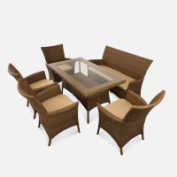 Материал комплекта - искусственный ротанг (ручного плетения)