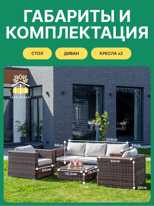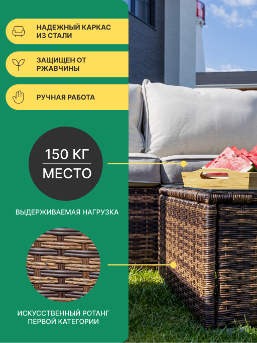 - Материал комплекта - искусственный ротанг (ручного плетения)
