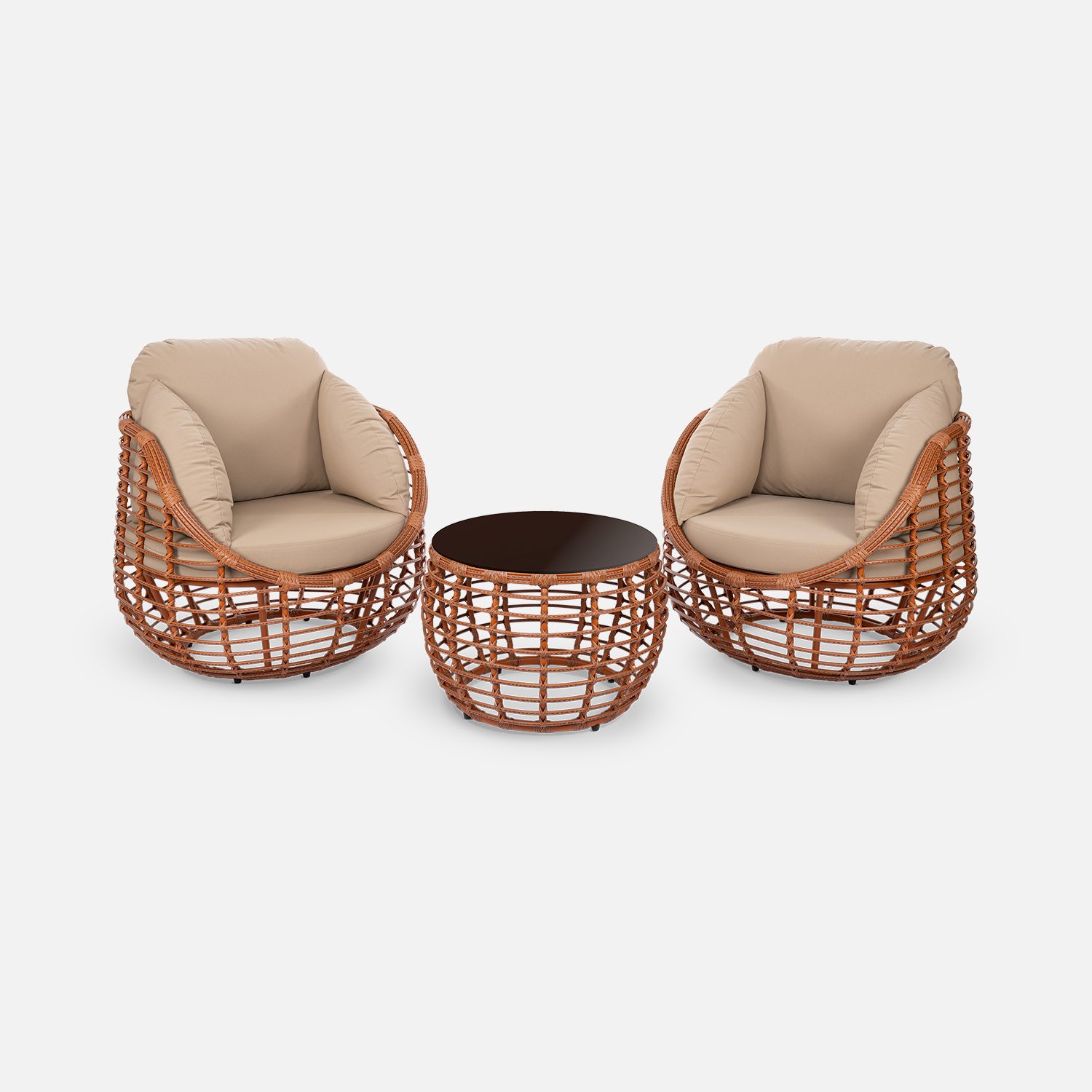 Материал комплекта - искусственный ротанг (ручного плетения)
