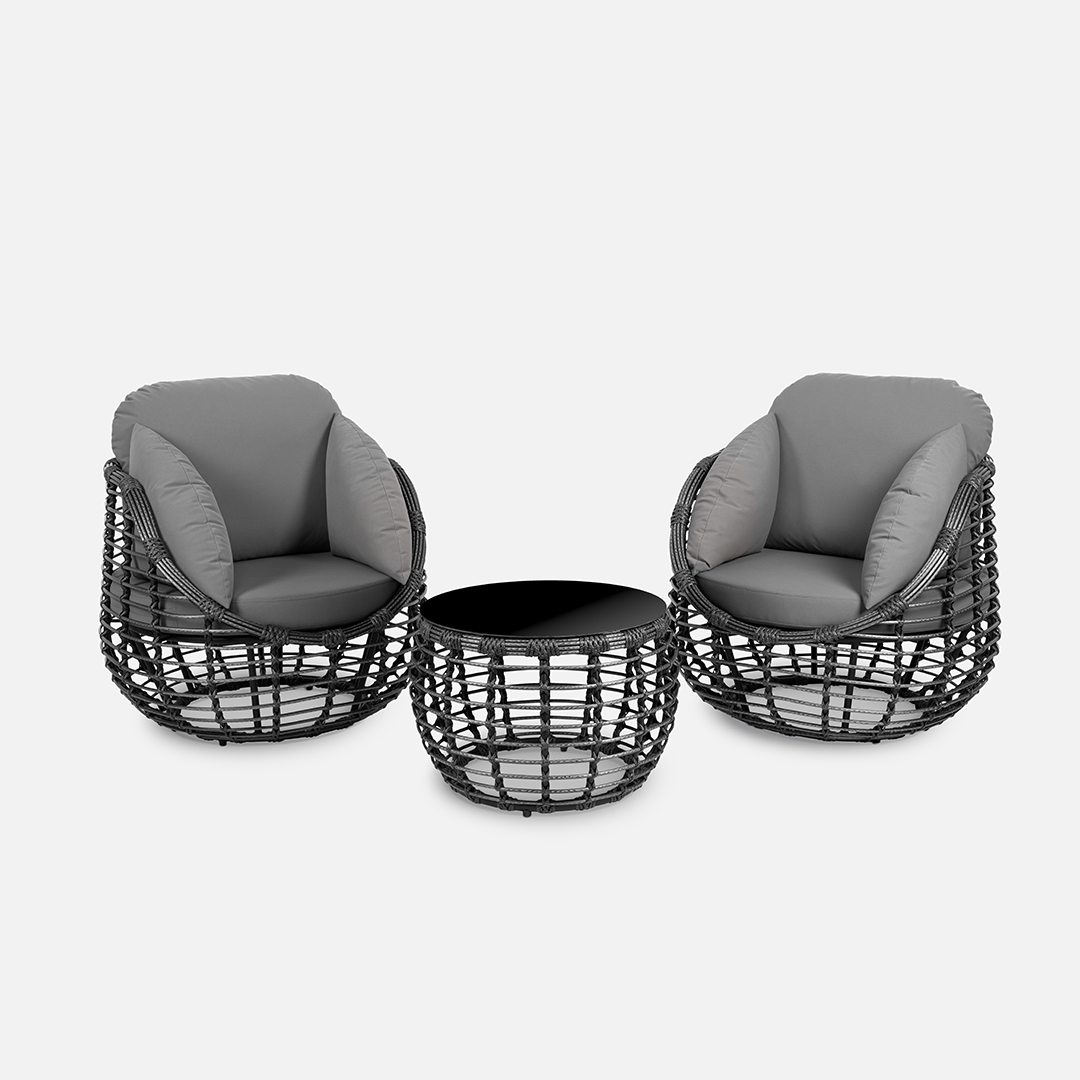 Материал комплекта - искусственный ротанг (ручного плетения)