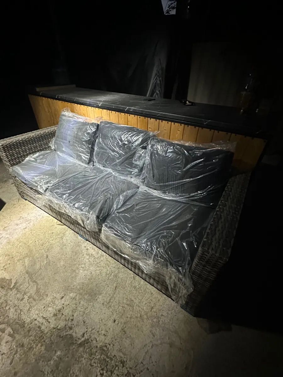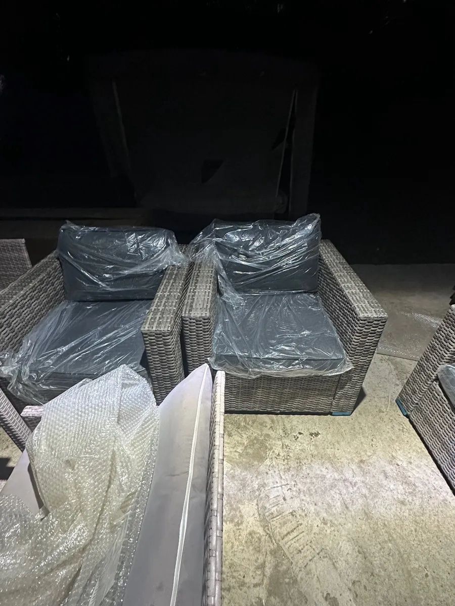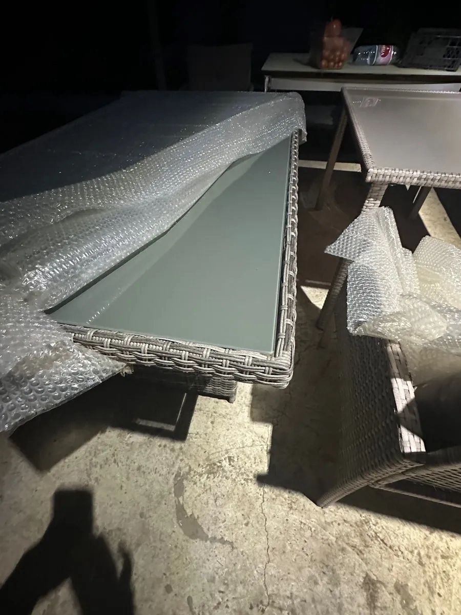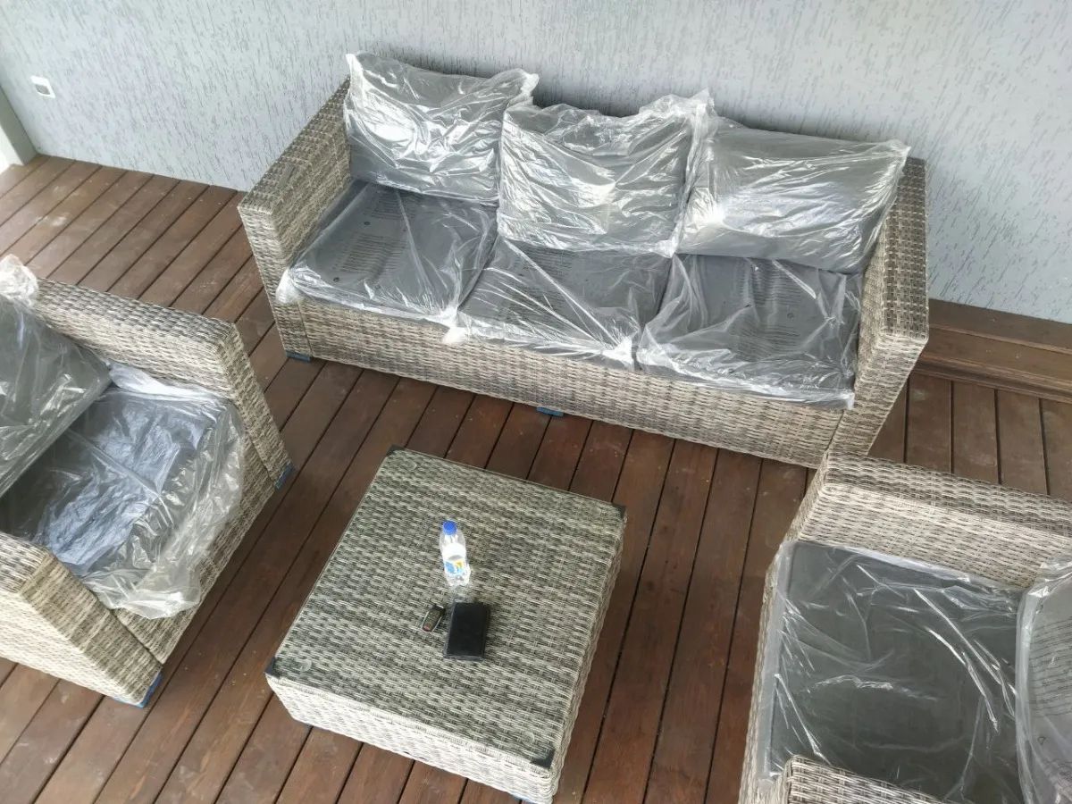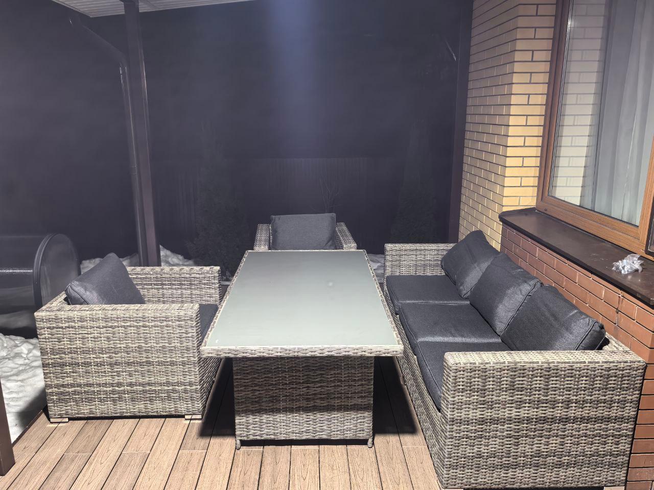 Все элементы мебели изготовлены из качественных материалов: металлокаркас и искусственный ротанг. Ротанг - это прочный и легкий материал, который не требует особого ухода и отлично переносит воздействие внешней среды. Металлокаркас обеспечивает прочность и стабильность всего конструкта.