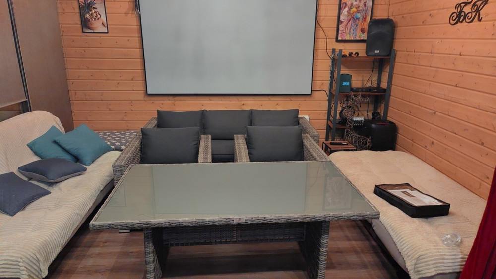 Трехместный диван и кресла с мягкими подушками, которые обеспечивают максимальный комфорт при использовании. Размеры дивана и кресел позволяют разместить на них достаточно людей, чтобы провести вечер в приятной обстановке.